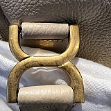 All of the handle's hardware were abrasive looking and scratched. The leather was scraped on one side.
