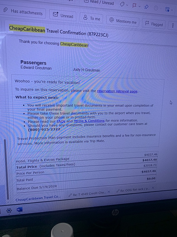 It started with the beginning of the vacation where the flight to Orlando was delayed by 3 hours meaning we would miss our flight to Cancun. I sent an email to Cheap Caribbean since it was 3:30 AM asking for guidance for what to do and it still remains unanswered. I was forced to pay out of pocket for two tickets direct to Cancun from Frontier. But I get it, travel delays happen, so I did not raise a fuss at the time so I could enjoy my vacation.