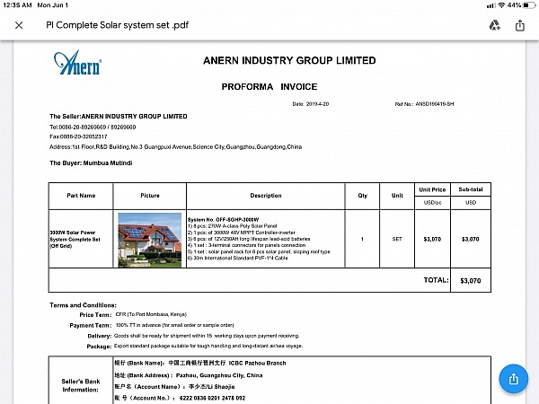 Be aware, don't trust this company "Anern" at all... sales managers are creating drama once they get the first deposit ( first payment) at the beginning they tell you your goods will be delivered after after one month as mentioned in the PI... but once they get the first payment they will make you struggle to get your goods and at the end of every month they tell you " sorry we can't deliver the goods for this month, you have yo wait untill the end of the next month"... I have waited 5 months without receiving anything from them.
